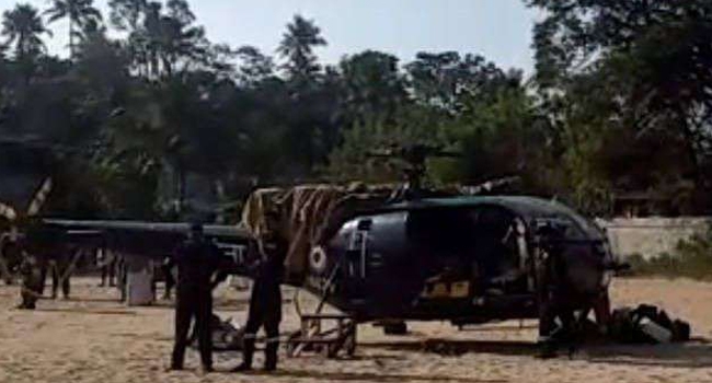 ചേര്ത്തല ചെമ്മനാട് ഭഗവതി ക്ഷേത്ര മൈതാനത്ത് നേവിയുടെ ഹെലികോപ്ടര് ഇടിച്ചിറങ്ങി