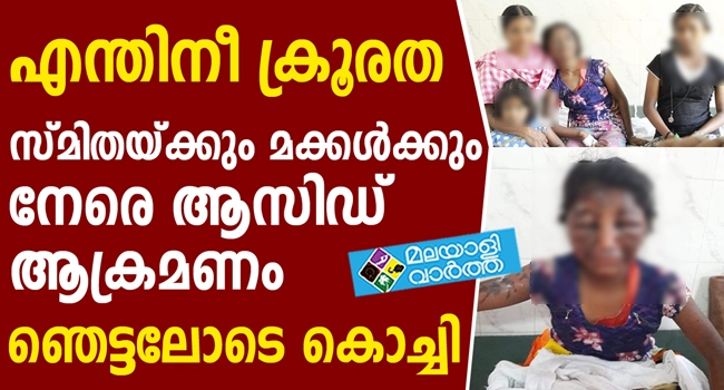 ചുട്ടെരിക്കാനുള്ള ശ്രമം പാളിയപ്പോൾ അടച്ചുറപ്പില്ലാത്ത ഒറ്റമുറി വീട്ടില് കഴിയുന്ന സ്മിതയ്ക്കും മക്കള്ക്കും നേരെ ആസിഡ് ആക്രമണം... പെൺകുട്ടിയുടെ കാഴ്ച്ച നഷ്ടപ്പെട്ടു; ഞെട്ടലോടെ കൊച്ചി
