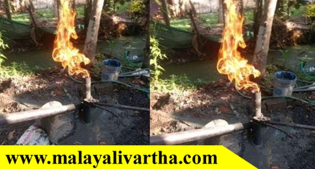 കാവാലം പഞ്ചായത്ത് അഞ്ചാംവാര്ഡ് പത്തില്ച്ചിറ രവീന്ദ്രന്റെ വീട്ടിലാണ് സംഭവം. പാചകവാതകത്തിന് സമമായ ഗന്ധം പ്രദേശത്ത് പരന്നതോടെ സ്ഥലത്തുണ്ടായിരുന്നവര് തീപ്പെട്ടി ഉരച്ച് കത്തിച്ചു. ഉടന് തീ കത്തി ഏറെനേരം ജ്വലിക്കുകയും ചെയ്തു. ആശങ്കയിലായ നാട്ടുകാര് തീയണച്ച് കുഴല് അടച്ച് സൂക്ഷിച്ചിരിക്കുകയാണ്.