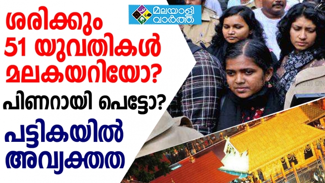 എന്നാല് അന്പത് വയസിന് താഴെയുള്ള യുവതികള് ഈ പട്ടികയിലില്ലെങ്കില് സര്ക്കാരിന് രാഷ്ട്രീയമായി വലിയ തിരിച്ചടിയാകും. ലോക്സഭാ തെരഞ്ഞെടുപ്പ് അടുത്തിരിക്കുന്ന വേളയില് ഇത് വലിയ ചര്ച്ചയും പ്രചാരണ വിഷയവുമാകും. യുവതീപ്രവേശനം സംബന്ധിച്ച റിവ്യൂഹര്ജി പരിഗണിക്കണോ എന്ന കാര്യം കോടതിയുടെ പരിഗണനയില് ഇരിക്കവെയാണ് സര്ക്കാര് ഇത്തരത്തിലൊരു പട്ടിക പുറത്ത് വിട്ടത്. അതില് പൊരുത്തക്കേടുകള് ഉണ്ടാകാന് സാധ്യതയില്ലെന്നാണ് നിയമവിദഗ്ധര് പറയുന്നത്. എന്തായാലും ഇത് സംബന്ധിച്ച ഔദ്യോഗിക വിവരങ്ങള് സര്ക്കാര് തന്നെയാണ് പുറത്ത് വിടേണ്ടത്.