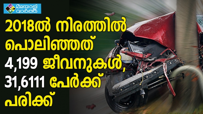 2018ല് നിരത്തില് പൊലിഞ്ഞത് 4,199 ജീവനുകള്, 31,6111 പേര്ക്ക് പരിക്ക്, മൂന്നുവര്ഷത്തിനിടെ ഗുരുതരമായി പരിക്കേറ്റത് 91,444 പേര്ക്ക്, കഴിഞ്ഞവര്ഷം റോഡപകടങ്ങളില് ഏറ്റവും കൂടുതല് പേരുടെ ജീവന് നഷ്ടമായത് ആലപ്പുഴ ജില്ലയിലാണ്