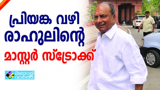 പ്രിയങ്കാ ഗാന്ധിയെ കോണ്ഗ്രസ് നേതൃത്വത്തിലേക്ക് കൊണ്ടുവന്നത് രാഹുല്ഗാന്ധി രാഷ്ട്രീയ എതിരാളികള്ക്കുള്ള മാസ്റ്റര് സ്ട്രോക്കാണെന്ന് കോണ്ഗ്രസ് പ്രവര്ത്തക സമിതി അംഗം എ.കെ ആന്റണി, ബി.ജെ.പി സര്ക്കാരിനെ എത്രയും വേഗം താഴെയിറക്കുകയാണ് ലക്ഷ്യം