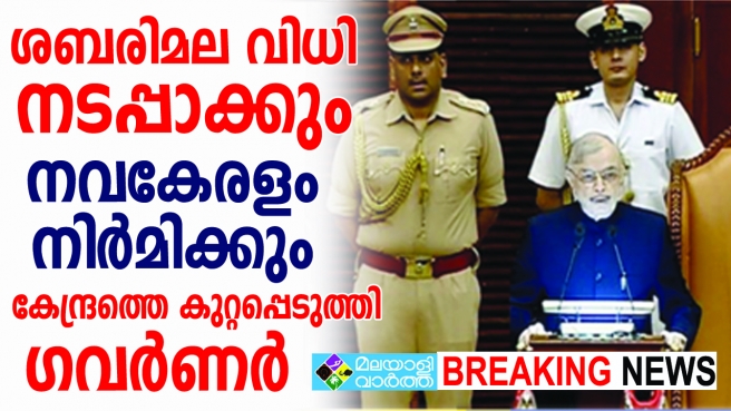 ശബരിമലയിൽ സ്ത്രീപ്രവേശം ഉറപ്പാക്കാനുള്ള സുപ്രീംകോടതി വിധി നടപ്പിലാക്കാൻ സർക്കാർ പ്രതിജ്ഞാബദ്ധമാണ്; നവകേരളം നിർമിക്കും; കേന്ദ്രത്തെ കുറ്റപ്പെടുത്തി ഗവർണറുടെ നയപ്രഖ്യാപനപ്രസംഗം