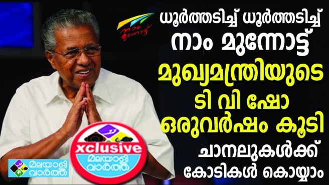 ധൂർത്തടിച്ച് ധൂർത്തടിച്ച് നാം മുന്നോട്ട്; 12 ചാനലുകൾക്ക് ഒരു വർഷം കൂടി കോടികൾ കൊയ്യാം; മുഖ്യമന്ത്രി പിണറായി വിജയന്റെ പ്രതിവാര ടി വി ചാനല് ഷോ 'നാം മുന്നോട്ട്' ഒരുവര്ഷത്തേക്ക് കൂടി നീട്ടാന് തീരുമാനമായി