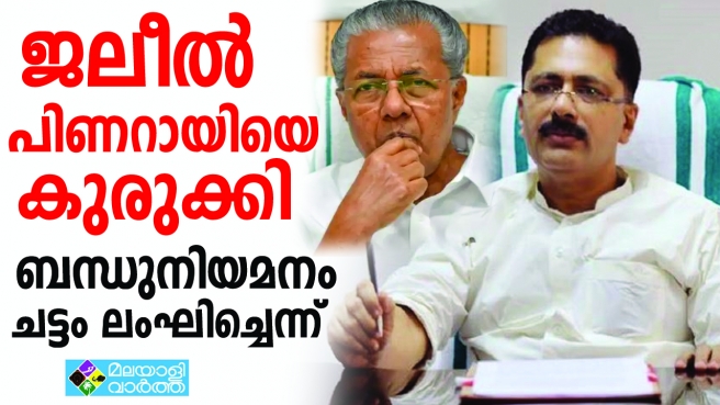 ബന്ധുനിയമന വിവാദത്തില് മന്ത്രി കെ.ടി ജലീലിനെ രക്ഷിച്ച മുഖ്യമന്ത്രി പിണറായി വിജയനെ അദ്ദേഹം തന്നെ കുരുക്കിലാക്കി, ജലീലിന്റെ രേഖമൂലമുള്ള മറുപടിയെ തുടര്ന്ന് പ്രതിപക്ഷം മുഖ്യമന്ത്രിക്കെതിരെ അവകാശലംഘനത്തിന് നോട്ടീസ് നല്കി