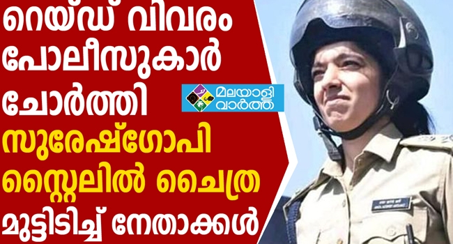 റെയ്ഡ് വിവരം പോലീസിനുള്ളിലെ ചിലര് സിപിഎം നേതാക്കള്ക്ക് ചോര്ത്തി കൊടുത്തുവെന്നും വിവരമാണ് ചൈത്രയ്ക്ക് ലഭിച്ചത്. സൈബര് സെല് വഴി ഈ ഉദ്യോഗസ്ഥന്റെ വിവരം ശേഖരിച്ചിട്ടുണ്ട്. ഇങ്ങനെ നടപടികളുമായി മുന്നോട്ട് പോകുമ്പോഴാണ് ദേ വരുന്നു ചൈത്രയ്ക്ക് സ്ഥലം മാറ്റം.