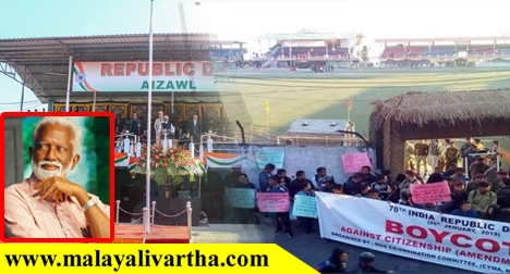 മന്ത്രിമാരും നിയമസഭാംഗങ്ങളും മറ്റ് ഉദ്യോഗസ്ഥരും മാത്രമാണ് ചടങ്ങില് പങ്കെടുത്തത്. അതിര്ത്തി സംരക്ഷണത്തിനുള്ള പ്രവര്ത്തനങ്ങള് ശക്തമാക്കുമെന്നും ഗ്രാമതലത്തില് പൗരത്വ രജിസ്ട്രേഷന് നടപ്പാക്കാനുള്ള നടപടികള് കൈക്കൊള്ളുമെന്നും കുമ്മനം പറഞ്ഞു. മിസോറാമിന്റെ പാരമ്ബര്യവും മൂല്യങ്ങളും സംരക്ഷിക്കുന്നതില് സര്ക്കാര് പ്രതിജ്ഞാബന്ധമാണെന്നും അദ്ദേഹം കൂട്ടിച്ചേര്ത്തു. പ്രതിഷേധത്തെ തുടര്ന്ന് വടക്കു കിഴക്കന് സംസ്ഥാനങ്ങളിലെല്ലാം ശക്മായ സുരക്ഷയിലാണ് റിപ്പബ്ലിക് ദിനാഘോഷം നടത്തിയത്.