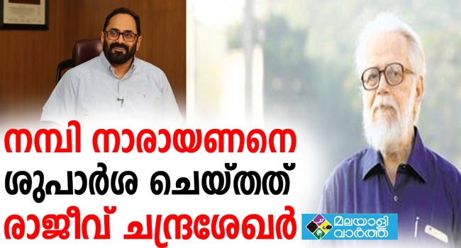 നമ്പിനാരായണന്റെ പത്മ പുരസ്കാര വിവാദം പുതിയ തലങ്ങളിലേക്ക് .മുന് ഐ എസ് ആര് ഒ ശാസ്ത്രജ്ഞന് നമ്പി നാരായണനെ പത്മ പുരസ്കാരത്തിന് ശുപാര്ശ ചെയ്തത് ബി.ജെ.പി. രാജ്യസഭാംഗമായ രാജീവ് ചന്ദ്രശേഖര് എന്ന് രേഖകൾ . കള്ളക്കേസില് പെട്ട് പീഡിപ്പിക്കപ്പെടുകയും ജയില്വാസം അനുഭവിക്കുകയും ചെയ്ത നമ്പി നാരായണന് നടത്തിയ നിയമപോരാട്ടം കണക്കിലെടുത്ത് അദ്ദേഹത്തെ പത്മ പുരസ്കാരമോ തത്തുല്യമായ പുരസ്കാരമോ നല്കി അംഗീകരിക്കണം എന്നായിരുന്നു പ്രധാനമന്ത്രി നരേന്ദ്ര മോദിക്കയച്ച കത്തില് രാജീവ് ചന്ദ്രശേഖര് ഉന്നയിച്ച ആവശ്യം. 2018 സെപ്തംബര് 19-നാണ് അദ്ദേഹം ശുപാര്ശക്കത്തയച്ചത്.