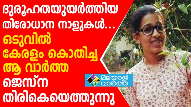 മുക്കൂട്ടുതറയിൽ നിന്നും കാണാതായ ജസ്ന മരിയയെ കേരളത്തിലൊട്ടാകെയും ഇതര സംസ്ഥാനങ്ങളിലും വ്യാപക അന്വേഷണം നടത്തി തിരോധാനത്തിന് ഒരുവര്ഷം തികയാനിരിക്കെ ശുഭ പ്രതീക്ഷ നൽകുന്ന ആ വാർത്തയെത്തി, ജെസ്ന ജീവിച്ചിരിപ്പുണ്ടെന്ന നിര്ണായക സന്ദേശം കര്ണാടക പോലീസില്നിന്നു ക്രൈംബ്രാഞ്ച് പ്രത്യേകാന്വേഷണ സംഘത്തിന് ലഭിച്ചു. ജെസ്ന എവിടെയാണെന്ന സൂചനയ്ക്കു പിന്നാലെ പോകേണ്ടെന്നാണു ഇപ്പോൾ കേരള പോലീസിന്റെ തീരുമാനം. ഇത് സംബന്ധിച്ച വാർത്ത മംഗളമാണ് റിപ്പോർട്ട് ചെയ്തത്. ഈ വാര്ത്തയുടെ വിശദാംശങ്ങള് ഇപ്പോഴും പുറത്തുവന്നിട്ടില്ല. ക്രൈംബ്രാഞ്ച് പ്രത്യേകാന്വേഷണ സംഘത്തിന് സൂചന ലഭിച്ചു എന്നാണ് മംഗളം വാര്ത്തയിലുള്ളത്.