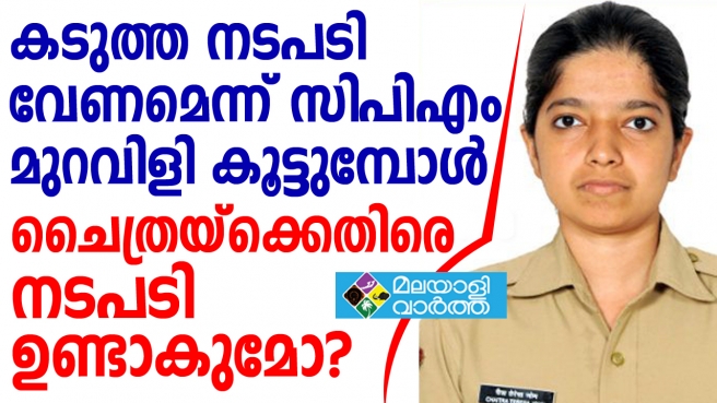 കടുത്ത നടപടി വേണമെന്ന്സി പിഎം മുറവിളി കൂട്ടുമ്പോൾ ചൈത്രയ്ക്കെതിരെ നടപടിയുണ്ടാകുമോ? പാര്ട്ടി ഓഫീസ് റെയ്ഡ് ചെയ്ത എസ്പി ചൈത്രക്കെതിരായ അന്വേഷണ റിപ്പോര്ട്ട് ഇന്നുകൈമാറും:- നടപടി വേണോ, വേണ്ടയോ എന്ന് തീരുമാനമെടുക്കുന്നത് മുഖ്യമന്ത്രി...