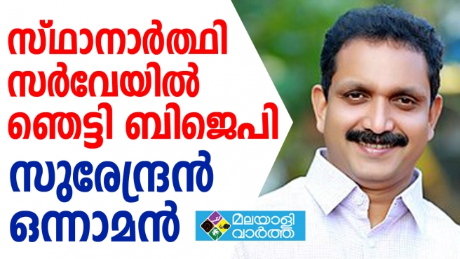 സ്ഥാനാർത്ഥി സർവേയിൽ ഞെട്ടി ബിജെപി; ബി.ജെ.പി ദേശീയ നേതൃത്വം കേരളത്തിൽ നടത്തിയ സ്ഥാനാർത്ഥി സർവേയിൽ ബിജെപി സംസ്ഥാന ജനറൽ സെക്രട്ടറി കെ. സുരേന്ദ്രൻ ഒന്നാമൻ
