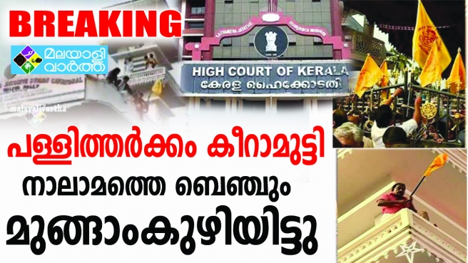 പിറവംപള്ളി തര്ക്ക കേസ് പരിഗണിക്കുന്നതില് നിന്ന് ഹൈക്കോടതിയുടെ നാലാമത്തെ ബെഞ്ചും പിന്മാറി:- ജസ്റ്റിസ് ഹരിലാൽ ജസ്റ്റീസ് ആനി ജോൺ എന്നിവരടങ്ങിയ ബെഞ്ചാണ് പിന്മാറിയത്