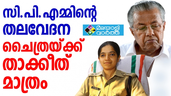 സി.പി.എമ്മിന് തലവേദനയായി മാറിയ എസ്.പി ചൈത്ര തെരേസാ ജോണിനെതിരെ കടുത്ത നടപടി എടുക്കാതെ താക്കീത് നല്കി തടിയൂരാന് സര്ക്കാര്, എ.ഡി.ജി.പി മനോജ് എബ്രഹാം ഡി.ജി.പിക്ക് നല്കിയ റിപ്പോര്ട്ടിനെ തുടര്ന്നാണ് തീരുമാനം
