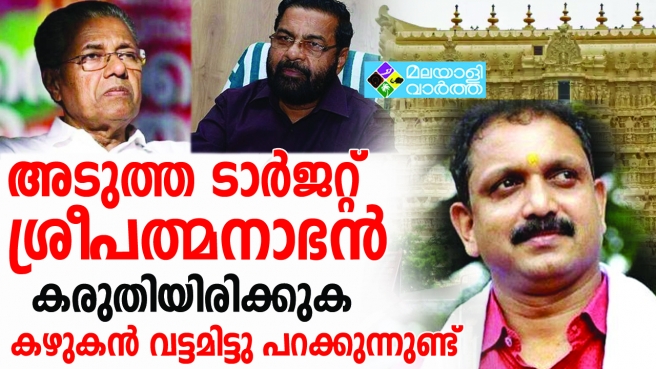 അയ്യപ്പ വിശ്വാസ ഭഞ്ജകരുടെ അടുത്ത ടാർജറ്റ് ശ്രീപത്മനാഭസ്വാമി ക്ഷേത്രമാണെന്ന് ഉറപ്പായി. വരും ദിവസങ്ങളിൽ അത് കൂടുതൽ ബോധ്യമാവും. അതിനുള്ള ഗൂഡാലോചന തകൃതിയായി അണിയറയിൽ നടക്കുന്നുണ്ട്. നെയ്യപ്പം തിന്നാൽ രണ്ടുണ്ട് ലാഭം എന്നുള്ളത് പത്മനാഭന്റെ കാര്യത്തിൽ പിണറായിക്കും കടകമ്പള്ളിക്കും നന്നായി അറിയാം. കോടതിയിലും സർക്കാർ തലത്തിലും ഈ ഗൂഡാലോചന മണക്കുന്നുണ്ട്. കരുതിയിരിക്കുക കഴുകൻ വട്ടമിട്ടു പറക്കുന്നുണ്ട് എന്നാണ് സുരേന്ദ്രന്റെ ഫേസ്ബുക്പോസ്റ്റ്.