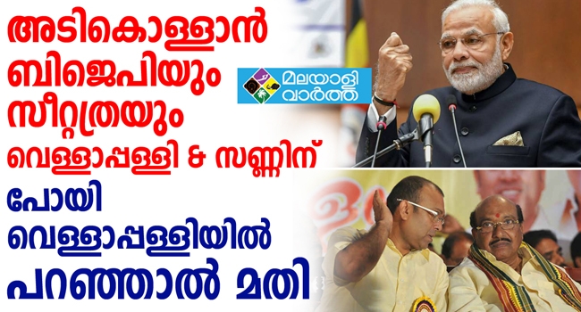 നിന്ന നില്പ്പില് കാലുമാറുന്ന വെള്ളാപ്പള്ളി & സണ് തെരഞ്ഞെടുപ്പ് അടുത്തതോടെ എന്ഡിഎയ്ക്ക് തലവേദനാവകുയാണ്. ലോക്സഭാ തിരഞ്ഞെടുപ്പിനു മുന്നോടിയായി എന്.ഡി.എ.യില് സീറ്റ് വിഭജന ചര്ച്ചകള്ക്കു തുടക്കമായപ്പോള് കേരളത്തില് എട്ട് സീറ്റ് വേണമെന്ന് ഘടകകക്ഷിയായ ബി.ഡി.ജെ.എസ്. ആവശ്യപ്പെട്ടത്. തിരഞ്ഞെടുപ്പു കാര്യങ്ങളാലോചിക്കാന് എന്.ഡി.എ. യോഗം കൊച്ചിയില് ചേരുന്നതിനു തൊട്ടുമുമ്ബാണ് ബി.ഡി.ജെ.എസ്. പ്രസിഡന്റ് തുഷാര് വെള്ളാപ്പള്ളി, ബി.ജെ.പി. സംസ്ഥാന അധ്യക്ഷന് പി.എസ്. ശ്രീധരന്പിള്ളയോട് ഇക്കാര്യം ആവശ്യപ്പെട്ടത്. അതാണിപ്പോള് 6 ആക്കിയത്.