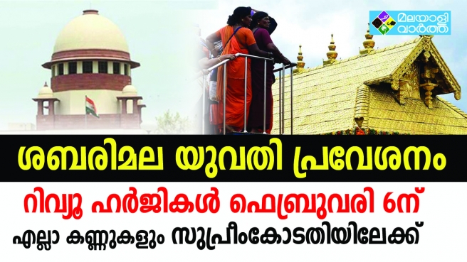 ഫെബ്രുവരി മാസം സുപ്രീംകോടതി പരിഗണിക്കുന്ന കേസുകളുടെ സാധ്യതാ പട്ടികയിലാണ് ശബരിമല കേസും ഉൾപ്പെട്ടിട്ടുള്ളത്. ശബരിമലയിൽ എല്ലാ പ്രായത്തിലുമുള്ള സ്ത്രീകൾക്ക് പ്രവേശനം അനുവദിച്ച സെപ്തംബർ 28 ലെ വിധിക്കെതിരായ 50ലേറെ പുനഃപരിശോധനാ ഹർജികൾ അടക്കം സുപ്രീംകോടതിയുടെ മുന്നിലുണ്ട്.