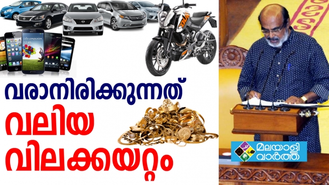 സ്വര്ണം, വെള്ളി, പ്ലാറ്റിനം, സിമന്റ്, സെറാമിക് ടൈല്സ്, ഗ്രാനൈറ്റ്, ആയൂര്വേദ മരുന്നുകള്, പാക്കറ്റ് ഭക്ഷണങ്ങള്, സിനിമാ ടിക്കറ്റ്, മൊബൈല് ഫോണുകള്, കമ്പ്യൂട്ടറുകള്, മറ്റ് ഇലക്ട്രോണിക്സ് ഉല്പ്പന്നങ്ങള് എന്നിവയ്ക്ക് വില കൂടും