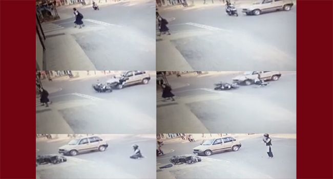 നേരെയുള്ള റോഡിലൂടെ പോകുകയായിരുന്ന സ്കൂട്ടറിലേയ്ക്ക് സൈഡില് നിന്നും ലക്കും ലഗാനവുമില്ലാതെ വന്ന കാര് ഇടിച്ചു കയറുകയായിരുന്നു. ഇടിയുടെ ആഘാതത്തില് യുവതി കാറിന്റെ മുകളിലൂടെ റോഡില് തലയിടിച്ച് വീഴുകയായിരുന്നു.