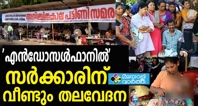 സെക്രട്ടേറിയറ്റിന് മുന്നില് എന്ഡോസള്ഫാന് പീഡിത ജനകീയ മുന്നണി നടത്തുന്ന സമരം പിന്വലിക്കണമെന്ന് സമരക്കാരോട് ആവശ്യപ്പെട്ടിട്ടുണ്ട്.1905 പേരെയും ലിസ്റ്റില് ഉള്പ്പെടുത്തണമെന്നാണ് സമരക്കാരുടെ ആവശ്യം. വിദഗ്ധ ഡോക്ടര്മാര് അടങ്ങിയ പാനല് 90 ദിവസത്തിനകം പരിശോധന നടത്തും. നേരത്തെ അര്ഹരെ കണ്ടെത്താന് മെഡിക്കല് ക്യാമ്പ് നടത്തിയപ്പോള് ഹര്ത്താല് കാരണം പങ്കെടുക്കാന് കഴിയാതിരുന്നവര്ക്കായി പ്രത്യേക ക്യാമ്പ് നടത്താമെന്നും സമരക്കാരെ അറിയിച്ചിട്ടുണ്ട്. ദുരന്തബാധിത കുടുംബത്തിലെ രണ്ടു കുട്ടികളില് ഒരാളെ മാത്രം ഉള്പ്പെടുത്തിയത് സംബന്ധിച്ച് സമരക്കാരുടെ പ്രതിനിധികള് ചൂണ്ടിക്കാട്ടിയിരുന്നു. ഇത്തരം കേസുകള് പ്രത്യേകം പരിഗണിക്കുമെന്നും മന്ത്രിമാര് അറിയിച്ചു.