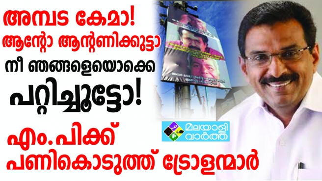 അമ്പട കേമാ! ആന്റോ ആന്റണിക്കുട്ടാ, നീ ഞങ്ങളെയൊക്കെ പറ്റിച്ചൂട്ടോ! ; ഇലക്ഷൻ അടുക്കുമ്പോൾ വോട്ടിനായി ജനങ്ങളുടെ മുന്നിലേക്ക് എത്തുകയും വിജയിച്ചതിനു ശേഷം മണ്ഡലത്തിലേക്ക് തിരിഞ്ഞുനോക്കുക പോലും ചെയ്യാത്ത പത്തനംതിട്ട എംപിക്കെതിരെ പ്രതിഷേധവുമായി നാട്ടുകാർ രംഗത്ത്