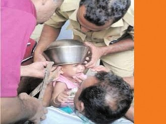 കളിക്കുന്നതിനിടയില് തലയില് പാത്രം കുരുങ്ങിയ കുഞ്ഞിനെ രക്ഷപ്പെടുത്തി