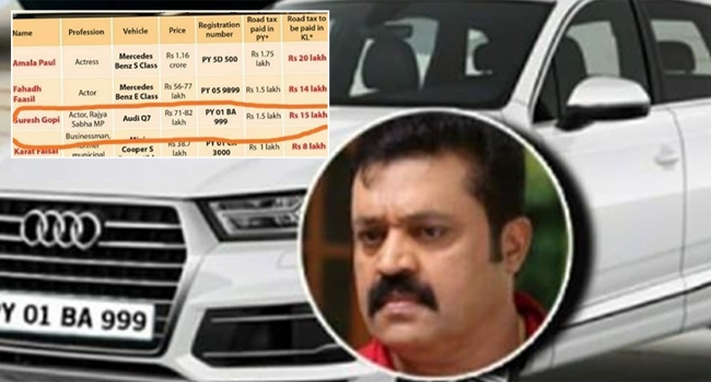 സുരേഷ് ഗോപി മോട്ടോര് വാഹനവകുപ്പിന് രേഖകള് നല്കിയിരുന്നെങ്കിലും ഇത് തൃപ്തികരമല്ലെന്നായിരുന്നു അന്ന് മോട്ടാര് വകുപ്പിന്റെ വിശദീകരണം. എംപിയായതിന് ശേഷവും മുമ്ബുമായി രണ്ട് വാഹനങ്ങളാണ് സുരേഷ് ഗോപി പുതുച്ചേരിയില് രജിസ്ട്രേഷന് നടത്തിയത്.