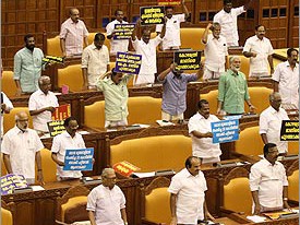കേരള നിയമസഭയുടെ പതിമൂന്നാം സമ്മേളനത്തിന് പ്രതിപക്ഷത്തിന്റെ പ്രതിഷേധത്തോടെ തുടക്കം. ബാര് കോഴ ആരോപണത്തില് പെട്ട ധനമന്ത്രി കെ.എം.മാണിയുടെ രാജി ആവശ്യപ്പെട്ട പ്രതിപക്ഷം, ഗവര്ണറുടെ നയപ്രഖ്യാപന പ്രസംഗം ബഹിഷ്കരിച്ചു. കോഴ മന്ത്രി മാണി രാജി വയ്ക്കുക എന്നെഴുതിയ പ്ലക്കാര്ഡുകളും ബാനറുകളും ഉയര്ത്തിപ്പിടിച്ചായിരുന്നു പ്രതിപക്ഷത്തിന്റെ പ്രതിഷേധം. പ്രതിപക്ഷം ഇറങ്ങിപ്പോയിട്ടും ഗവര്ണര് നയപ്രഖ്യാപന പ്രസംഗം തുടര്ന്നു.
