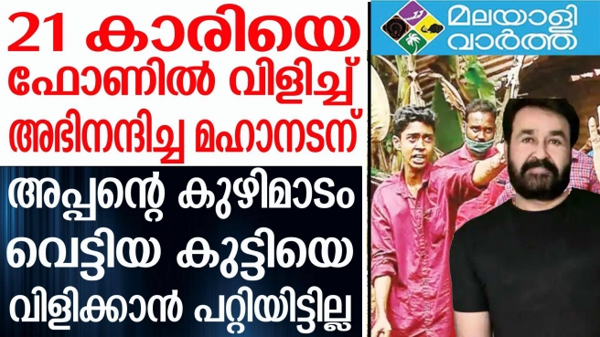 മോഹന്ലാലൊക്കെ എവിടെയാണോ എന്തോ...21 കാരിയെ ഫോണില് വിളിച്ച് അഭിനന്ദിച്ച മഹാനടന് അപ്പന്റെ കുഴിമാടം വെട്ടിയ കുട്ടിയെ വിളിക്കാന് പറ്റിയിട്ടില്ല