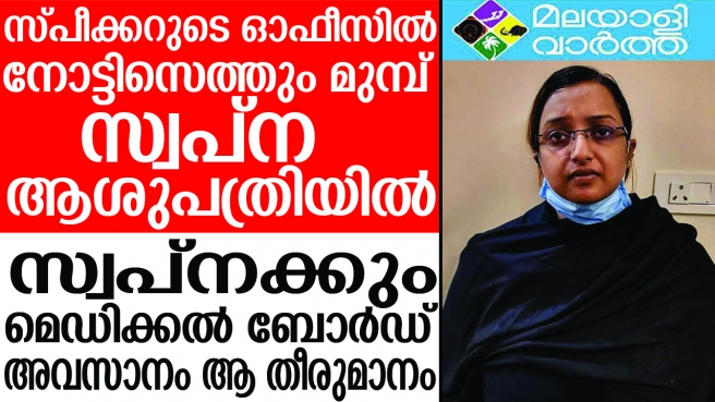 തുടര്ന്നാണ് മെഡിക്കല് ബോര്ഡ് രൂകരിച്ച് തീരുമാനങ്ങള് എടുത്തത്. ഇനി സ്വപ്നയെ ആശുപത്രിയില് കിടത്തി ചികിത്സിക്കേണ്ടതില്ല എന്നാണ് മെഡിക്കല് ബോര്ഡ് തീരുമാനം. ഇതിന്റെ അടിസ്ഥാനത്തിലാണ് ഡിസ്ചാര്ജ്ജ് ചെയ്യാന് തീരുമാനിച്ചത്.
