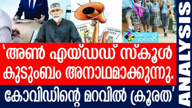 അൺ എയ്ഡഡ് സ്കൂൾ മാനേജ്മെൻ്റിൻ്റെ അഹങ്കാരത്തിന് മുമ്പിൽ ഒരു ജീവൻ കൂടി പൊലിഞ്ഞു. ഒരു കുടുംബം അനാഥമായി.മാനേജ്മെൻ്റിന് തൃപ്തിയായി.ഇത് പോലെ എത്രയോ ജീവച്ഛവങ്ങൾ ഇവിടെയുണ്ട്. കൃത്യമായി ശമ്പളം കൊടുക്കാതെ എത്രയോ കുടുംബങ്ങൾ കണ്ണീരുമായി കഴിയുന്നു -കോവി ഡിൻ്റെ മറവിൽ ഏറ്റവും വലിയ തട്ടിപ്പും തീവെട്ടിക്കൊള്ളയും നടത്തിയതും നടത്തി കൊണ്ടിരിക്കുന്നതും അൺ എയ്ഡഡ് സ്കൂളുകളാണ്.തിരുവനന്തപുരത്തെ ഒരു സ്കൂളിലെ ഡ്രൈവർ ആണല്ലോ ജോലി നഷ്ടപ്പെട്ട് തീ കൊളുത്തി ജീവനൊടുക്കിയത്. കുട്ടികളിൽ നിന്ന് കോ വിഡ് കാലത്തും മുഴുവൻ ഫീസും വാങ്ങുന്നു.സ്കൂൾ ഫീസ് ഘടന നോക്കൂ - ലാബ് ഫീസ്, കംപ്യൂട്ടർ ലാബ് ഫീ, സ്കൂൾ ഡേ ഫീ, മാഗസിൻ ഫീ, കൾച്ചറൽ ഫീ ഇങ്ങനെ പോകുന്നു ഫീസ് ഘടന. ഇതിൽ എന്തു കാര്യമാണ് സ്കൂളിൽ ഇക്കൊല്ലം നടന്നത്. എന്നിട്ടും എന്തിൻ്റെ പേരിലാണ് ജീവനക്കാർക്ക് ശമ്പളം പകുതിയാക്കിയതും,പിരിച്ചുവിട്ടതും' കുട്ടികളുടെ ഫീസ് വാങ്ങിയാണ് ജീവനക്കാർക്ക് ശമ്പളം നൽകുന്നത് എന്നാണല്ലോ പറയുന്നത്? കുട്ടികളിൽ നിന്ന് മുഴുവൻ തുകയും വാങ്ങി. എന്നിട്ട് എന്താണ് ജീവനക്കാർക്ക് ശമ്പളം കൊടുക്കാത്തത്.കൊല്ലത്ത് ഒരു അദ്ധ്യാപിക ആത്മഹത്യക്ക് ശ്രമിച്ചിരുന്നല്ലോ. അതും ജോലി നഷ്ടപ്പെട്ടതിൻ്റെ പേരിലായിരുന്നു. കോ വിഡ് ഇല്ലാതിരുന്ന കാലത്തും സ്കൂൾ മാനേജ്മെൻറ് അദ്ധ്യാപകരെയും ജീവനക്കാരെയും മാനസികമായി പീഡിപ്പിക്കുമായിരുന്നു. ഒരു ടീച്ചർക്ക് ആഴ്ചയിൽ 32 - 34 പീരിയഡ് വരെയാണ് പഠിപ്പിക്കാനുള്ളത്. ക്ലാസ്സിൽ ഇരിക്കാൻ പാടില്ല. ലീവ് എടുക്കാൻ പാടില്ല. സ്ത്രീകൾക്ക് അവരെ സംബന്ധിച്ചുള്ള ആരോഗ്യ പ്രശ്നങ്ങൾ കാണിച്ചു കൊണ്ട് ലീവിന് അപേക്ഷിച്ചാൽ അത് നിരസിക്കപ്പെടും. അൺ എയ്ഡഡ് ജീവനക്കാർക്ക് പരാതിപ്പെടാൻ ഒരിടമില്ല. സംഘടിച്ചാൽ സ്കൂളിൽ നിന്ന് പുറത്ത് പോകേണ്ടി വരും. ഒരു കടിഞ്ഞാൺ ഇല്ലാത്ത സ്ഥാപനങ്ങളാണ് അൺ എയ്ഡഡ് വിദ്യാലയം. തോന്നിയ രീതിയിലുള്ള ശമ്പള വ്യവസ്ഥ -പലയിടത്തും ശമ്പളം ബുക്കിൽ ഒന്ന്. കൊടുക്കുന്നത് മറ്റൊന്ന്. ഇവിടെ ചോദ്യം പാടില്ല.നാവടക്കു- പണിയെടുക്കൂ എന്നാണ് ഇത്തരത്തിലുള്ള സ്കൂളുകളുടെ മുദ്രാവാക്യം. അദ്ധ്യാപികമാർ മാനേജ്മെൻ്റിൻ്റെ മാനസിക പീഡനത്തിന് ഇരകളാണ്. കോ വിഡ് കാലത്ത് അദ്ധ്യാപകരെ കൊണ്ട് വീട്ടിൽ ഇരുത്തി ക്ലാസ്സുകൾ എടുപ്പിച്ച് അത് അപ് ലോഡ് ചെയ്യിക്കുന്നു. സ്കൂളിന് ഈ കാലയളവിൽ വൈദ്യുതി ഇൻ്റർനെറ്റ് ചാർജ്, കുടിവെള്ള ചാർജ് ഇതൊന്നും ഉണ്ടായില്ല -കോവിഡ് ഇവിടെ നിന്നും പോകരുത് എന്ന് ആഗ്രഹിക്കുന്ന ഒരു വിഭാഗമാണ് അൺ എയ്ഡഡ് സ്കൂൾ -ഈ അൺ എയ്ഡഡ് സ്കുളുകളുടെ ശമ്പള കാര്യത്തിലും ജോലി സമയത്തിലും പൊതു നിയമം കൊണ്ട് വരുന്നതിനായി പലവട്ടം നിയമസഭയിൽ സബ്മിഷൻ ഉന്നയിച്ചു എങ്കിലും വേണ്ടത്ര ലക്ഷ്യം കാണാതെ 