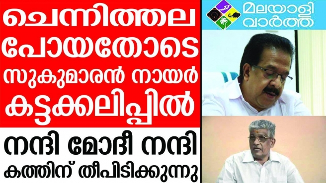 ചെന്നിത്തലയെ കാണാനില്ല... 5 വര്ഷത്തോളം സ്ഥാനമാനങ്ങള് വേണ്ടെന്നു പറഞ്ഞു നടന്ന ഉമ്മന്ചാണ്ടി അവസാനം മുഖ്യമന്ത്രി കുപ്പായത്തിനായി ചെന്നിത്തലയെ വെട്ടിയപ്പോള് കാര്യങ്ങള് കൈവിടുന്നു; മോദിക്കും ഷായ്ക്കും നന്ദി അറിയിച്ച് ജി. സുകുമാരന് നായര് അയച്ച കത്ത് വൈറലാകുമ്പോള് നേട്ടം കൊയ്യാനുറച്ച് ബിജെപി