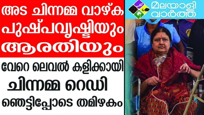 തമിഴ് രാഷ്ട്രീയത്തില് ഇനി ചിന്നമ്മയായ അണ്ണാ ഡിഎംകെ മുന് ജനറല് സെക്രട്ടറി വി.കെ.ശശികലയുടെ കാലമായിരിക്കും. അതിനുള്ള കരുക്കള് നീക്കി ശശികല ജയില് മോചിതയായി. കാറിനു മുന്നില് അണ്ണാ ഡിഎംകെ പതാക, ചിന്നമ്മ വാഴ്ക വിളികള്, പുഷ്പവൃഷ്ടിയും ആരതിയും തുടങ്ങിയ കലാപരിപാടികളുമായാണ് ശശികല ജയില്മോചിതയായി ആശുപത്രി വിട്ടത്. തമിഴക രാഷ്ട്രീയത്തില് നിറഞ്ഞു കളിക്കുമെന്ന വ്യക്തമായ സന്ദേശം നല്കിയിരിക്കുകയാണ്. ബെംഗളൂരു നഗരത്തില്നിന്ന് 50 കിലോമീറ്റര് അകലെ നന്ദിഹില്സിനു സമീപത്തെ റിസോര്ട്ടില് ഒരാഴ്ച വിശ്രമിച്ചശേഷം ചെന്നൈയിലേക്കു തിരിക്കും.