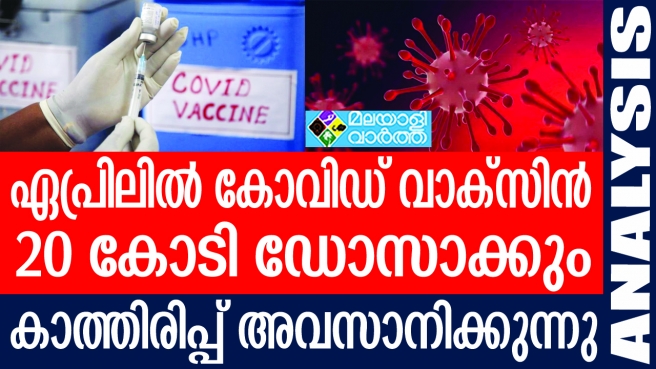 ഏപ്രിലോടുകൂടി ആവശ്യക്കാരില് ഒരു വലിയ ഗതമാനത്തിന് വാക്സിന് എത്തിക്കാന് കഴിയുമെന്നാണ് സെറം ഇന്സ്റ്റിറ്റിയൂട്ടിന്റെ പ്രതീക്ഷ. അതിനുള്ള അഹോരാത്ര ശ്രമങ്ങളാണ് പൂനയില് നടക്കുന്നത്.
