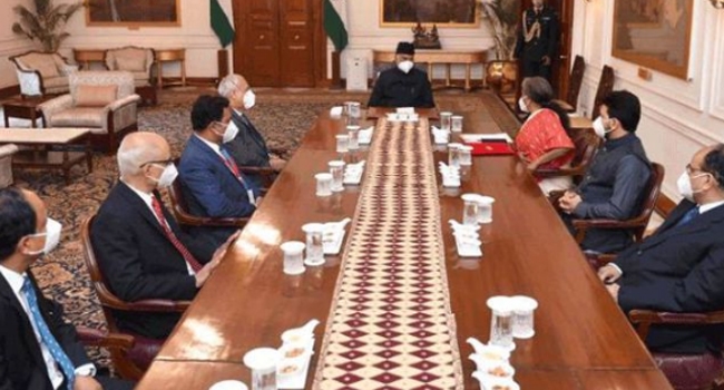 രാഷ്ട്രപതി റാംനാഥ് കോവിന്ദിനെ സന്ദര്ശിച്ച് അവതരണാനുമതി തേടിയതിന് ശേഷമാണ് ഇവര് പാര്ലമെന്റിലെത്തിയത്. ധനകാര്യ മന്ത്രി നിര്മല സീതാരാമന് അവതരിപ്പിക്കുന്ന മൂന്നാമത്തെ ബജറ്റാണ് ഇത്.