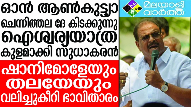 പ്രതിപക്ഷ നേതാവ് രമേശ് ചെന്നിത്തലയ്ക്ക് ബസ്റ്റ് രാജയോഗമാണ്. മുഖ്യമന്ത്രി കുപ്പായം തച്ചിരുന്ന ചെന്നിത്തലയെ ഉമ്മന് ചാണ്ടി വെട്ടി. ഇപ്പോഴിതാ ഐശ്വര്യ കേരള യാത്ര കുളമാക്കി കോണ്ഗ്രസ് നേതാവ് കെ. സുധാകരനും. തന്നെ കെ.പി.സി.സി. അധ്യക്ഷന് ആക്കാതിരിക്കാന് ചെന്നിത്തലയും കൂട്ടരും കളിച്ചതാണെന്നു വരെ സുധാകരന് പറഞ്ഞു വയ്ക്കുന്നു. മാത്രമല്ല കമ്മ്യൂണിസ്റ്റുകാര്ക്ക് മുമ്പേ ഷാനിമോള് ഉസ്മാന് വന്നതിനേയും ചോദ്യം ചെയ്യുന്നു. കോണ്ഗ്രസില് നല്ലൊരു അടി കണ്ടിട്ട് വര്ഷങ്ങളായി. അതില് ഒരറ്റത്ത് കെ. സുധാകരനാകുമ്പോള് തീപ്പൊരി കൂടും.