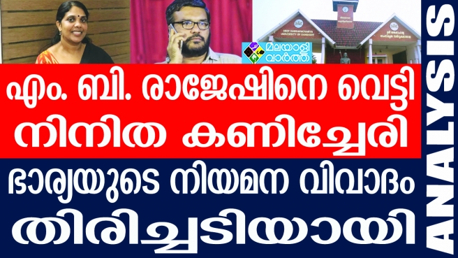 എം. ബി. രാജേഷിന്റെ നിയമസഭാ സീറ്റ് ഭാര്യ നിനിത കണിച്ചേരി വെട്ടി. ഭാര്യ കാരണം ഭർത്താവിന്റെ നിയമസഭാ സീറ്റ് തെറിക്കുന്നത് സി പി എമ്മിൽ ആദ്യ സംഭവമാണ്.
