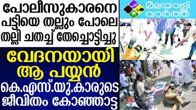 പോലീസിനും വേദനിക്കും... ഒരു ചെറുപ്പക്കാരനായ പോലീസുകാരനെ വളഞ്ഞിട്ട് പട്ടിയെ തല്ലും പോലെ തല്ലുന്ന കാഴ്ച വലിയ നൊമ്പരമായി മാറുന്നു; സ്വന്തം ഡ്യൂട്ടി ചെയ്യേണ്ടി വന്ന പോലീസുകാരന്റെ പരിക്ക് ഗുരുതരം; ജോലിക്കാര്ക്ക് വേണ്ടി പോലീസിനെ തല്ലിയ കെ.എസ്.യു.ക്കാര്ക്ക് ഇനി ഒരു ജോലിയും കിട്ടാതെ തെക്ക് വടക്ക് നടക്കേണ്ടി വരും