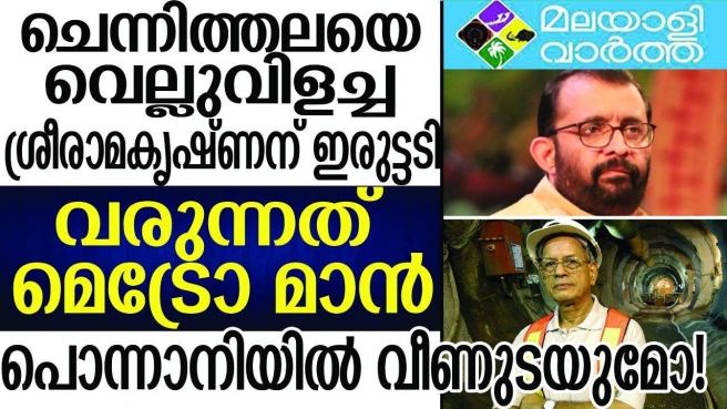ഇത്രയ്ക്ക് പണി പ്രതീക്ഷിച്ചില്ല... ആര്ജ്ജവമുണ്ടെങ്കില് രമേശ് ചെന്നിത്തല പൊന്നാനിയില് തനിക്കെതിരെ മത്സരിക്കണമെന്ന് വെല്ലുവിളിച്ച പി. ശ്രീരാമകൃഷ്ണന് വെല്ലുവിളിയായി മെട്രോമാന്; ഇ ശ്രീധരന് മത്സരിക്കാന് താത്പര്യം പൊന്നാനി; തൃശൂരും പരിഗണനയില്