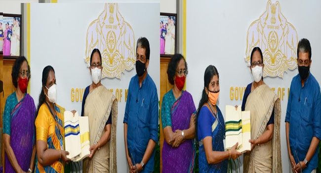 അങ്കണവാടി വര്ക്കറായ അനിതകുമാരിയും ഹെല്പ്പറായ ഗീതയും മന്ത്രിയില് നിന്നും യൂണിഫോം സാരികള് സ്വീകരിച്ചു.