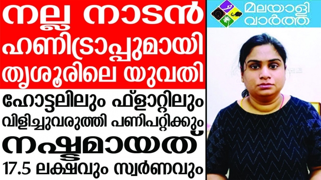 ട്രെയിനി കളക്ടറത്രെ... തൃശൂര് കളക്ടറേറ്റില് ട്രെയിനി കളക്ടറാണെന്നും വന്തുകയുടെ ഇന്ഷുറന്സ് എടുക്കാമെന്നും പറഞ്ഞ് ഏജന്റായ മധ്യവയസ്കനെ വിളിച്ചുവരുത്തി നഗ്ന ചിത്രങ്ങള് എടുത്തു; ഹണിട്രാപ്പില് കുടുങ്ങിയ അദ്ദേഹത്തില് നിന്നും തട്ടിയെടുത്തത് 17.5 ലക്ഷവും സ്വര്ണവും