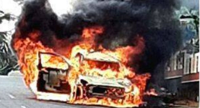 ഇടതു വശത്തെ മുന് സീറ്റിലിരുന്ന അനിലിന് ഡോര് ലോക്കായതിനാല് തുറക്കാനായില്ല. നാട്ടുകാര് ഓടിക്കൂടിയെങ്കിലും ആരും പേടിച്ച് കാറിനടുത്തേക്ക് പോയില്ല.