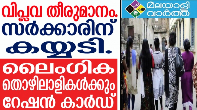 വീടോ വിലാസമോ വേണമെന്നില്ല.... വിപ്ലവ തീരുമാനം . സർക്കാരിന് കയ്യടി . ലൈംഗിക തൊഴിലാളികള്ക്കും റേഷന് കാര്ഡ്