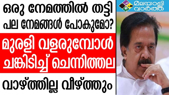 ഇതോടെ മുഖ്യമന്ത്രിപദം സ്വപ്നം കാണുന്ന ചെന്നിത്തലയ്ക്ക് കനത്ത തിരിച്ചടിയാണ് ഉണ്ടാകുന്നത്. മുരളീധരന് ജയിച്ച് വന്നാല് വലിയ വെല്ലുവിളിയാകും. അതിനാല് തന്നെ മുരളീധരനെ വാഴ്ത്തുന്നതിന് പകരം വീഴ്ത്താനായിരിക്കും ശ്രമിക്കുക.
