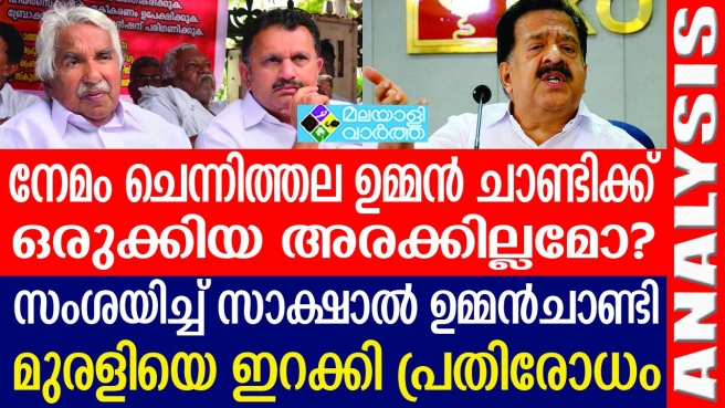 ഉമ്മന് ചാണ്ടിയെ നേമത്ത് നിര്ത്താന് ശ്രമിക്കുന്നത് ഗൂഢ ലക്ഷ്യം ഉള്ളവരാണെന്ന കെ. മുരളീധരന്റെ തുറന്നു പറച്ചിലിന് പിന്നിലുള്ളതും ഉമ്മന് ചാണ്ടി തന്നെയാണ്.