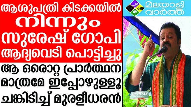 ആദ്യ വെടി കെ മുരളീധരന് നേരെയാണ് പൊട്ടിച്ചത്. ന്യുമോണിയ ബാധിതനായ സുരേഷ് ഗോപി ടെലിഫോണിലൂടെ ഒരു ചാനല് ചര്ച്ചാ പരിപാടിയിലാണ് ആഞ്ഞടിച്ചത്.