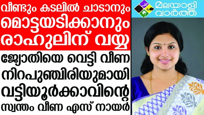 ഇനിയും കടലില് ചാടാനും മൊട്ടയടിക്കാനും രഹുലിന് സൗകര്യമില്ല. അതിനാല് തന്നെ പ്രസംഗം പരിഭാഷ നടത്തി കൈയ്യടി നേടിയതിന്റെ പേരില് മാത്രം ജ്യോതി വിജയകുമാറിന് സ്ഥാനാര്ത്ഥിത്വം നല്കേണ്ടന്ന് തീരുമാനമായി. അങ്ങനെ വട്ടിയൂര്ക്കാവില് അഡ്വ. വീണ എസ് നായര് യു ഡി എഫ് സ്ഥാനാര്ത്ഥിയായി.