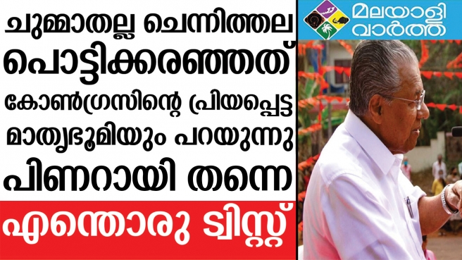 കോണ്ഗ്രസുകാരുടെ പ്രിയപ്പെട്ട പത്രമാണ് മനോരമയും മാതൃഭൂമിയും. ഭരണപക്ഷത്തിന്റെ ശ്രേയാംസ്കുമാറിന്റെ കൈകളിലാണ് മാതൃഭൂമി എങ്കിലും പത്രം പ്രതിപക്ഷത്തിന്റേ റോളിലാണ് പലപ്പോഴും പ്രവര്ത്തിക്കുന്നത്. ഇപ്പോള് ആ മാതൃഭൂമിയും ഭരണ തുടര്ച്ച പറയുന്നു. ഇതോടെ ഏഴോളം ദേശീയ സംസ്ഥാന മാധ്യമങ്ങളാണ് ഭരണ തുടര്ച്ച പറഞ്ഞത്. ചെന്നിത്തല ഹരിപ്പാട് പൊട്ടിക്കരഞ്ഞതിന് ശേഷമുള്ള ആദ്യ സര്വേ എന്ന പ്രത്യേകതയുമുണ്ട്.