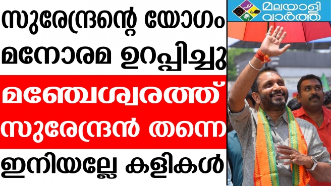 എന്തായാലും മനോരമയുടെ പ്രവചനത്തില് ആവേശത്തിലാണ് ബിജെപി. അതേസമയം ചെറിയ പേടിയുമുണ്ട്. സുരേന്ദ്രന്റെ വിജയം എപ്പോഴത്തേയും പോലെ ഉറപ്പിച്ചാല് വോട്ട് മറിക്കുമോ എന്ന പേടിയാണ് ഉള്ളത്.
