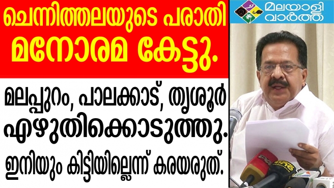 എല്ലാ സര്വേകളിലും തുടര്ഭരണം പ്രവചിച്ചതോടെ ചെന്നിത്തല ചെറിയ പരാതിയും പരിഭവവുമായി രംഗത്തെത്തിയിരുന്നു. എന്നാല് കഴിഞ്ഞ ദിവസം മനോരമ കൂടി കാലുമാറിയതോടെ ചെന്നിത്തല പരാതിയുമായി തെരഞ്ഞെടുപ്പ് കമ്മീഷന്റെ മുന്നിലെത്തി.