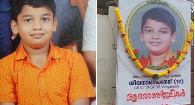 തിരുവനന്തപുരം വെങ്ങാനൂർ സ്വദേശിയായ പന്ത്രണ്ടുകാരൻ ശിവനാരായണനാണ് മരണപ്പെട്ടത്. തിരുവനന്തപുരം വെങ്ങാനൂര് ഗാന്ധി സ്മാരക ആശുപത്രിക്ക് സമീപം 'പ്രസാര'ത്തില് പ്രകാശിന്റെ മകനാണ് ശിവനാരായണൻ.